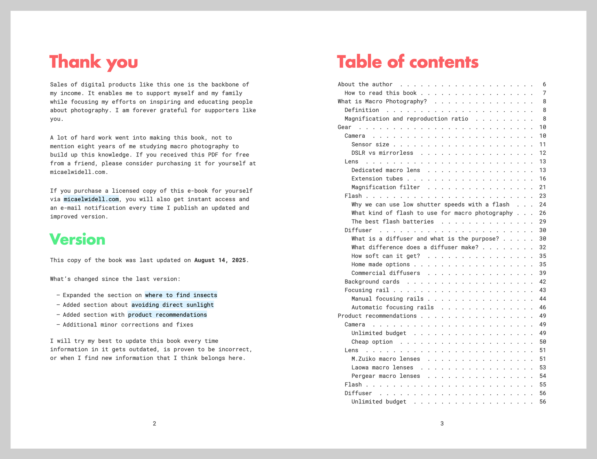 And I feel like you are getting an awful lot of value for the money. You get 8 years of macro photography experience, condensed into a simple PDF that you can read in a couple of evenings. If you actually take the time to read my book and apply the tips, you will improve your macro photography skills by a lot, and that should be worth at least $44 to a lot of people. If some youtube photographers can charge $8000 for a workshop in an exotic location (not including flight tickets lol), I should be able to charge this price for a nice little book containing EVERYTHING I know about my craft ;)